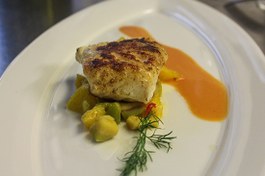 Prato Principal: Bacalhau em Court Bouillon de Alvarinho, A Broa e O Azeite