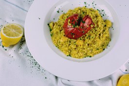 Prato Principal: Risoto de Sapateira com Espuma de Limas